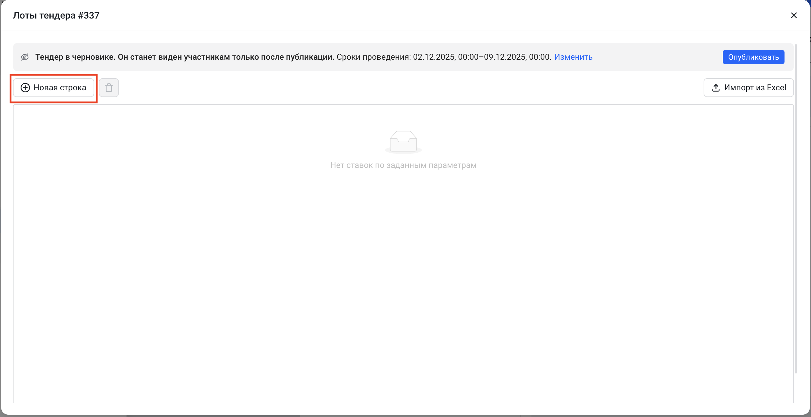 - Нажмите на кнопку "Новая строка" для добавления еще одной строки