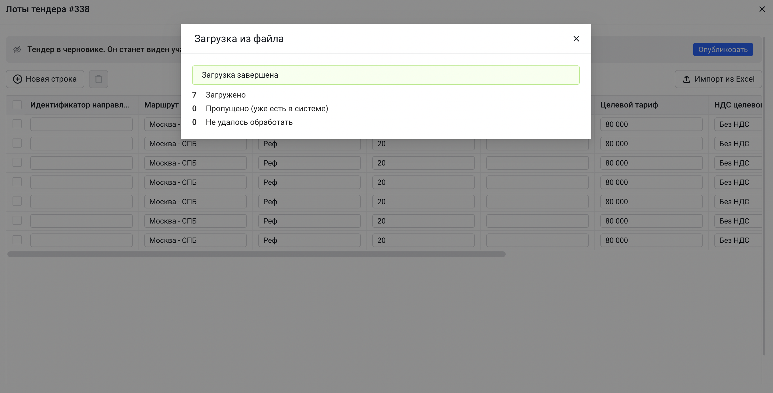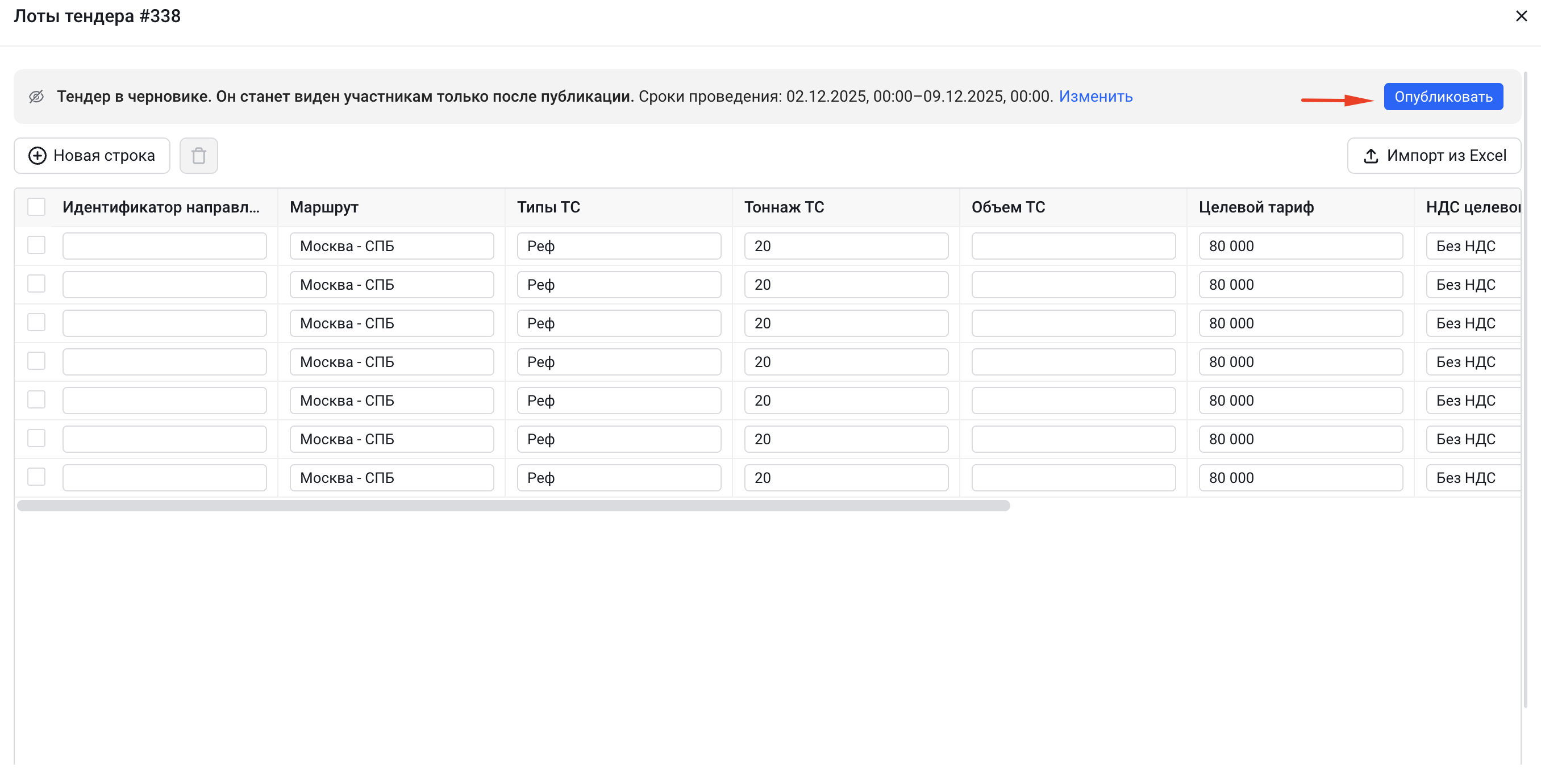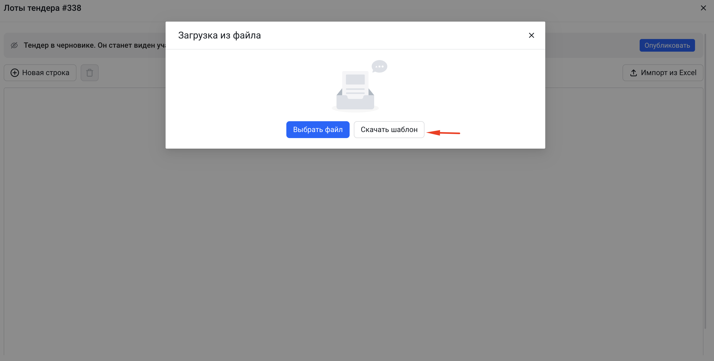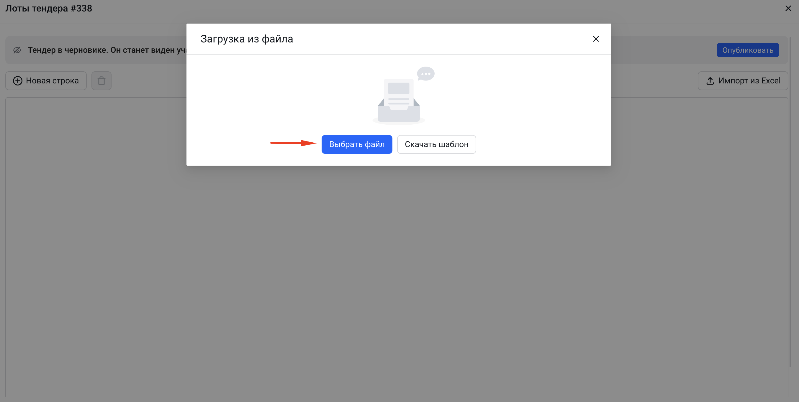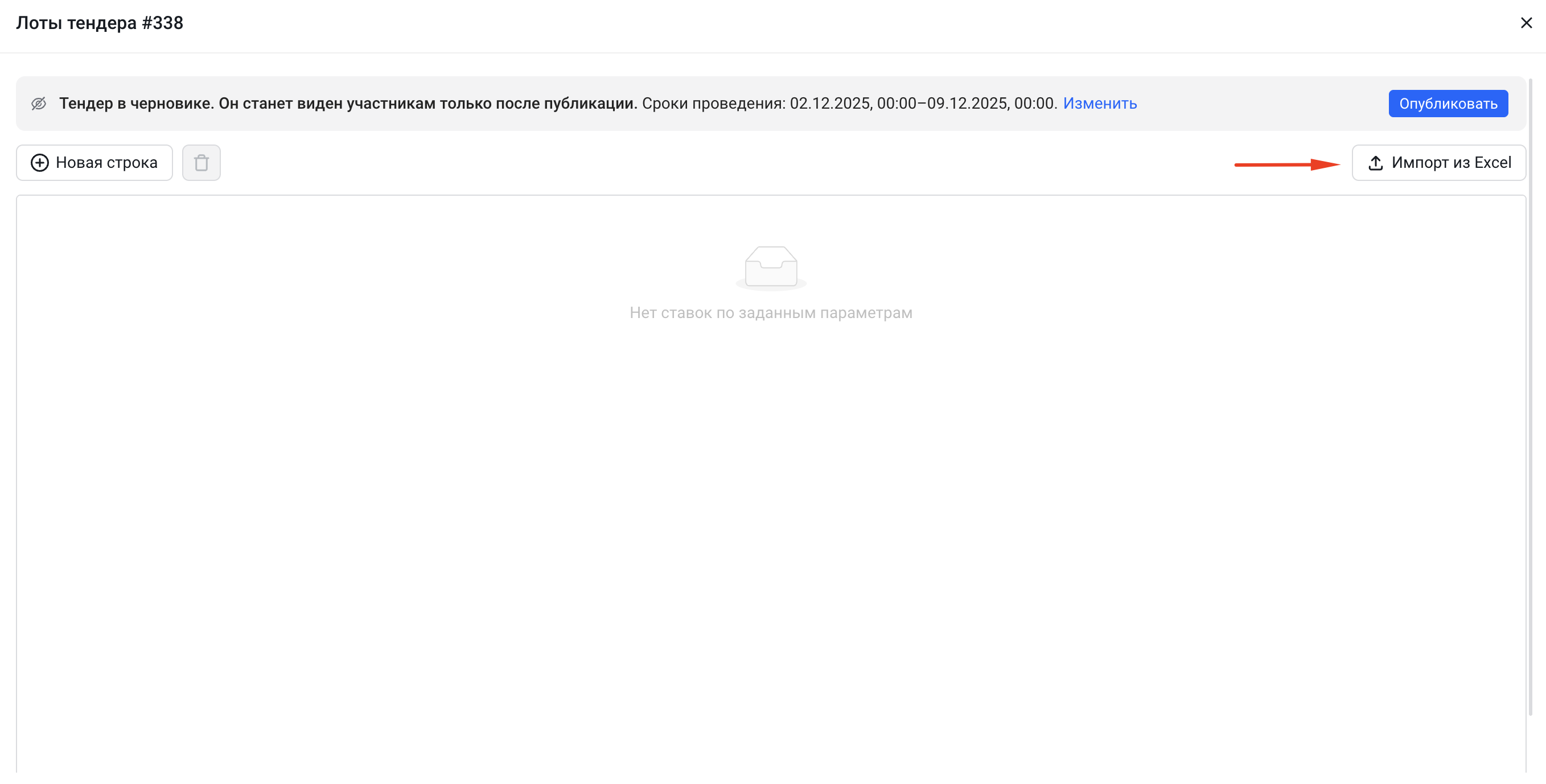 2. Массовая загрузка через Excel — файл Excel с необходимыми данными для загрузки сразу нескольких лотов одновременно.