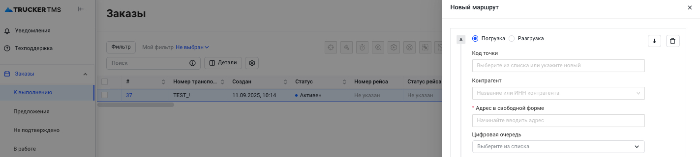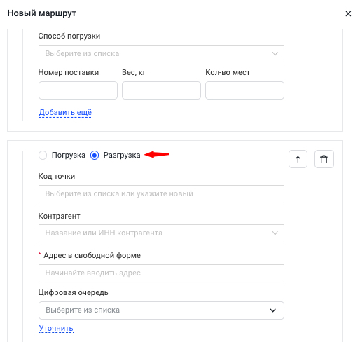 - Выберите следующую точку. Это может быть погрузка или разгрузка.