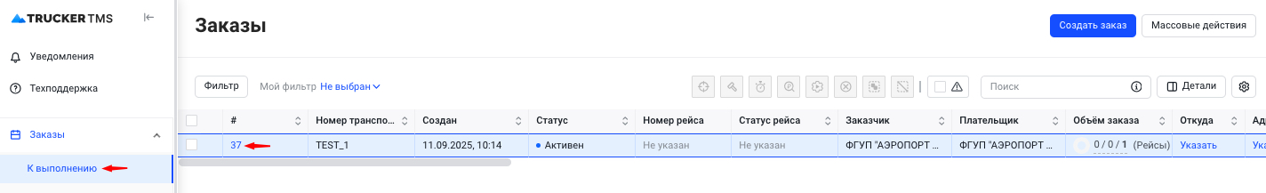 - Перейдите на вкладку — Заказы, подраздел — К выполнению и нажмите на номер интересующего заказа
