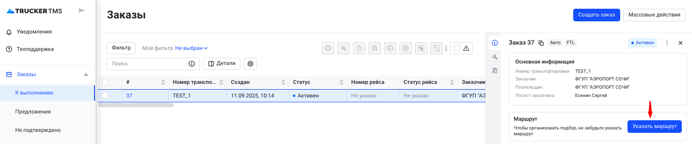 | Требования к транспорту | Блок с детальной информацией о том, какой транспорт нужен на заказ. Нажмите на "+" далее из выпадающего списка выберите вид кузова, укажите тоннаж и/или объем. | |