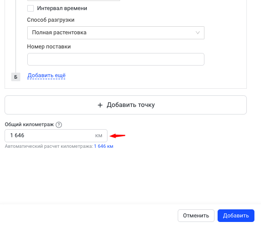 - Общий километраж отобразится внизу маршрутного листа