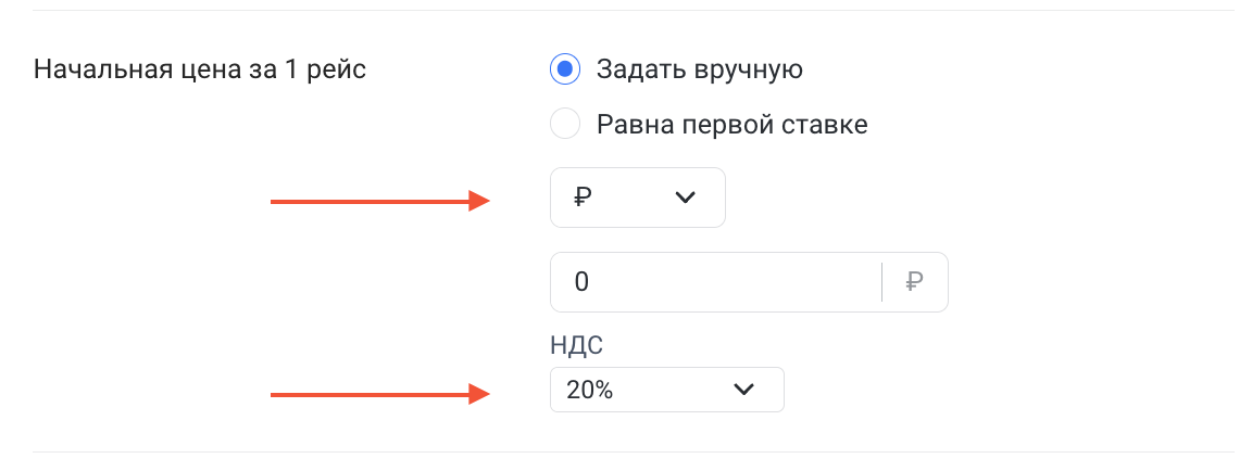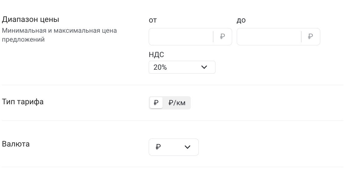 - Обозначьте диапазон цены, тип НДС, тип тарифа и валюту