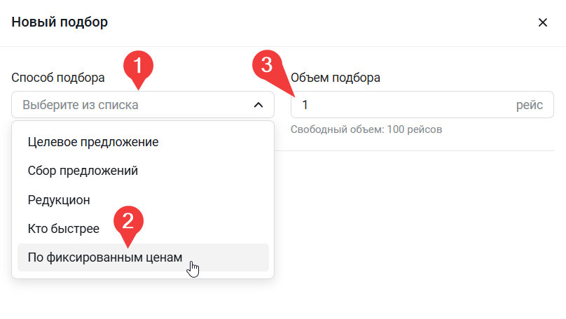 1, 2. Выберите тип подбора - "По фиксированным ценам".