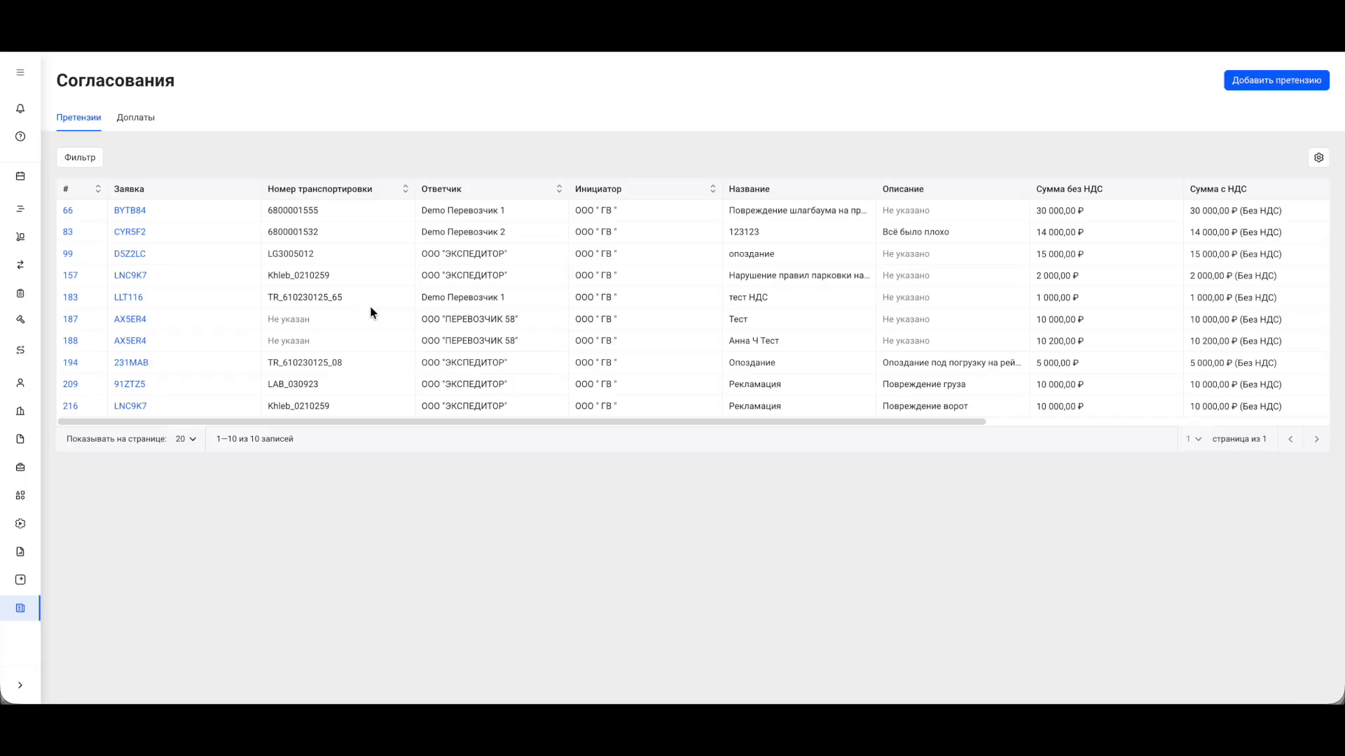 Раздел «Согласования» получил новые управляемые таблицы в подразделах «Доплаты» и «Претензии».