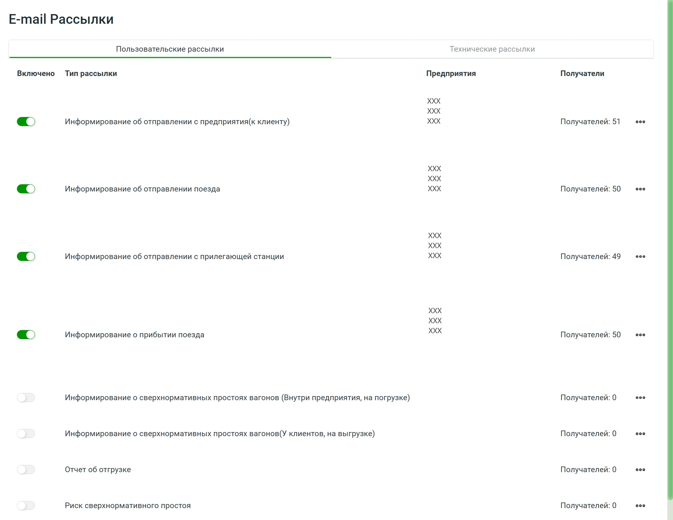 Предприятие — для каких предприятий (или филиалов) актуальна данная рассылка.