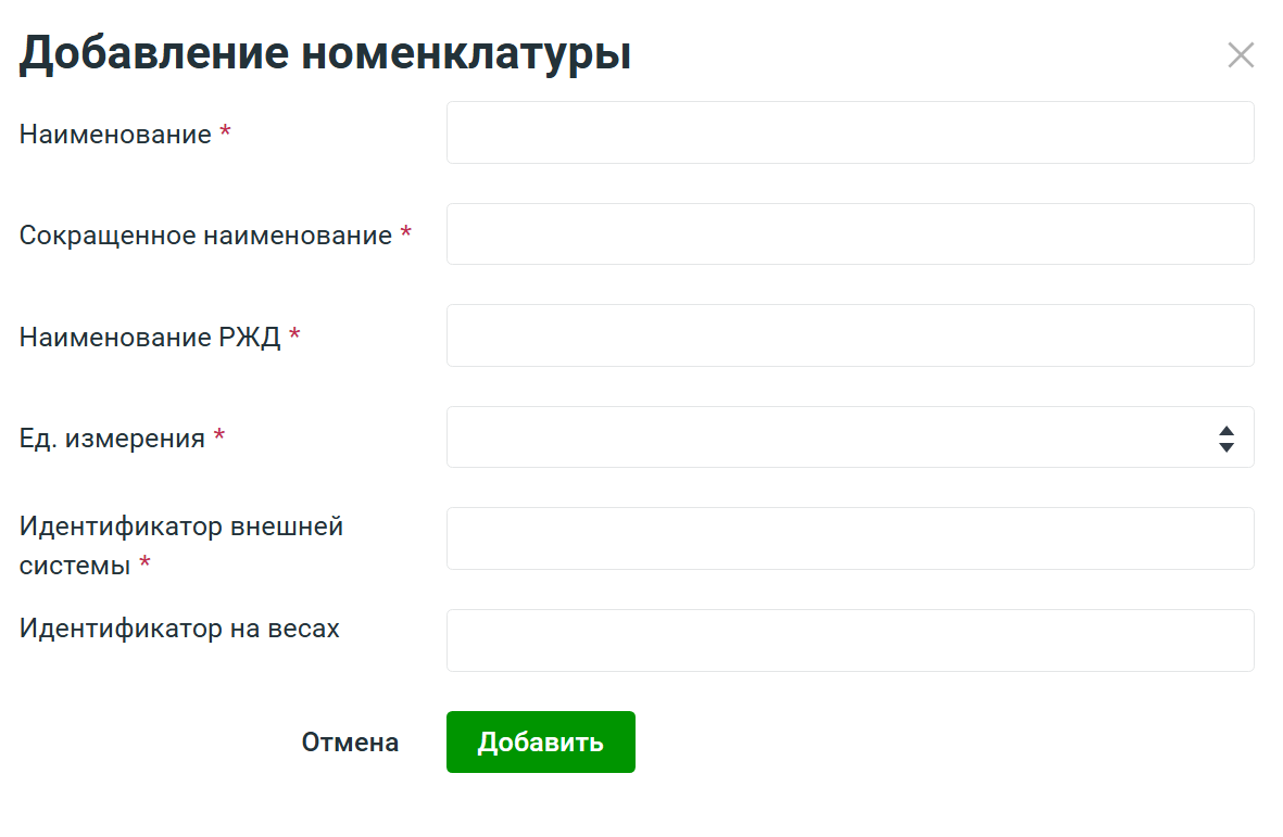 Рисунок 28. Добавление номенклатуры.