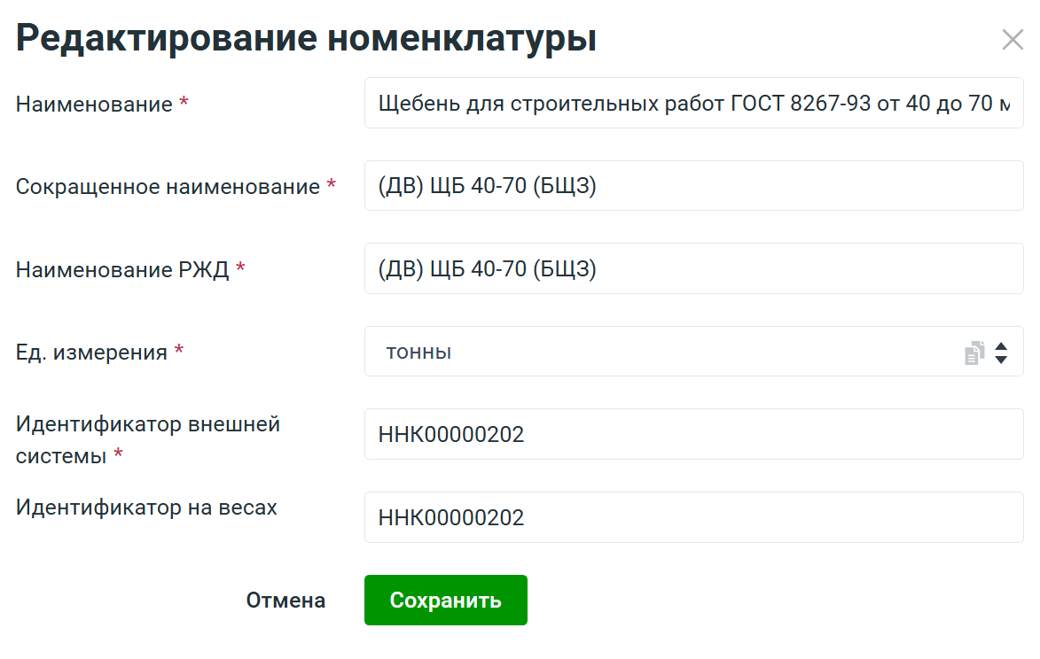 4.2.2. Редактирование номенклатуры