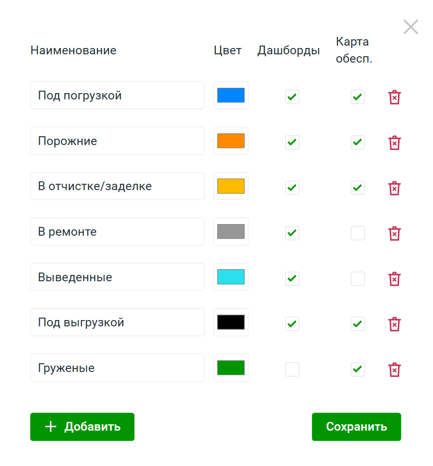 Настройка состояний вагонов выполняется через кнопку «Состояния».