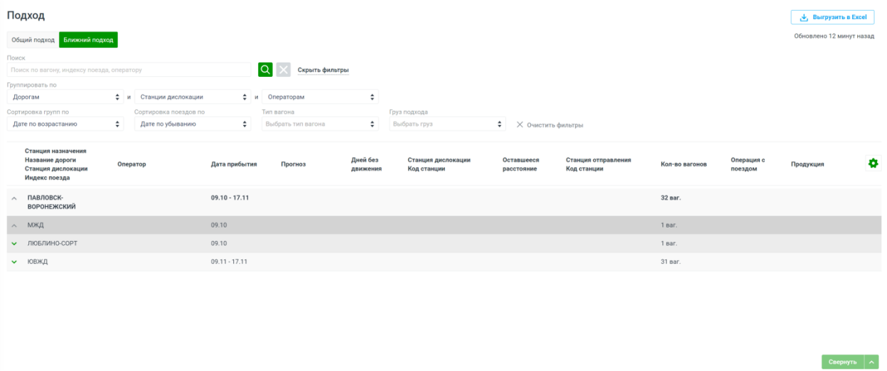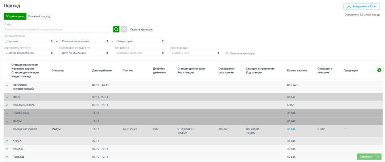 Подраздел предназначен для отслеживания местоположение вагонов, которые следуют к станциям предприятия. Позволяет отслеживать дислокацию и состояние вагонов, следующих к станциям, а также прогнозировать их прибытие.
