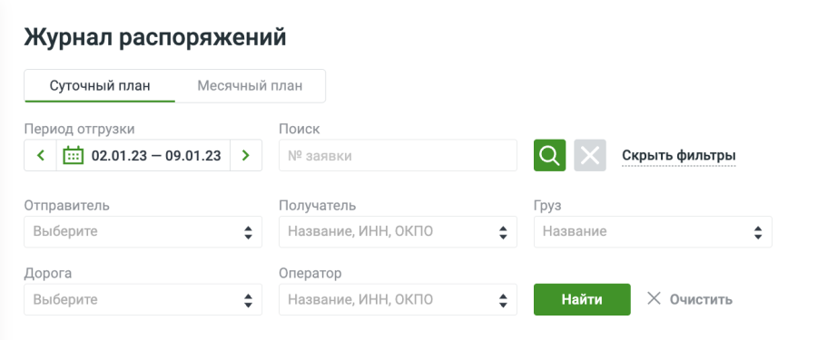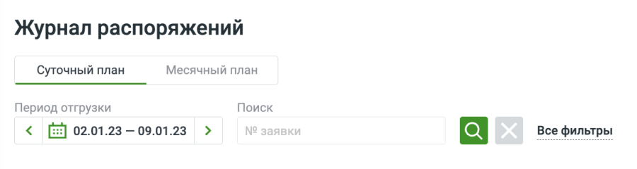 В разделе суточный план, отображается журнал распоряжений на текущие сутки. Пример интерфейса изображен на рисунке ниже.