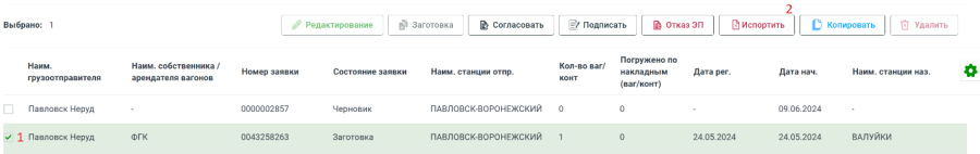 Если документ был отправлен в ЭТРАН и его статус изменен с «Черновика» на «Заготовку», то он уже не может быть удален. Чтобы приостановить работу с документом и не запустить его в отработку его можно испортить. Для этого необходимо выбрать документ и нажать кнопку «Испортить».