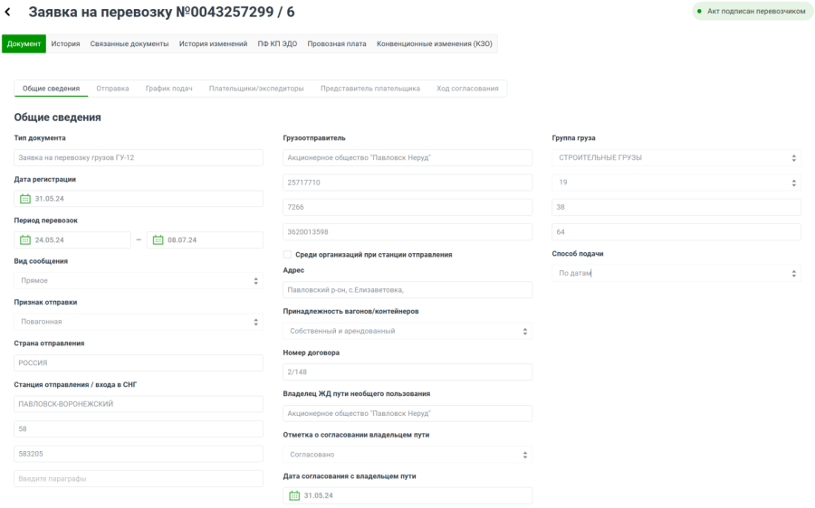При двойном нажатии на строку с интересующим документом откроется страница с разделами и полями документа, аналогичными оригиналу. Перемещение по разделам документа возможно через прокручивание колесика мышки или классическим нажатием на них.