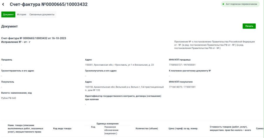 При двойном нажатии на строку с интересующим документом откроется страница с разделами и полями документа, аналогичными оригиналу.